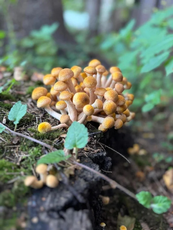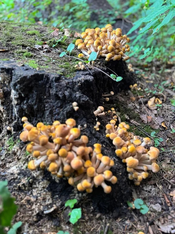 Грибы на фото, опята и белые в том числе растут на участке.