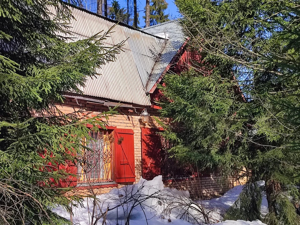 На участке — дом из бревна, облицован кирпичом.